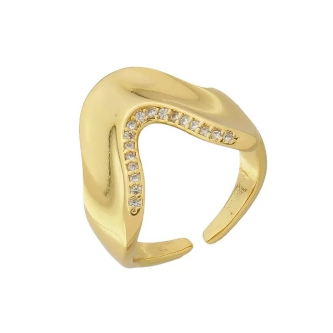 Anel regulável orgânico luxo, com micro zircônias cristais