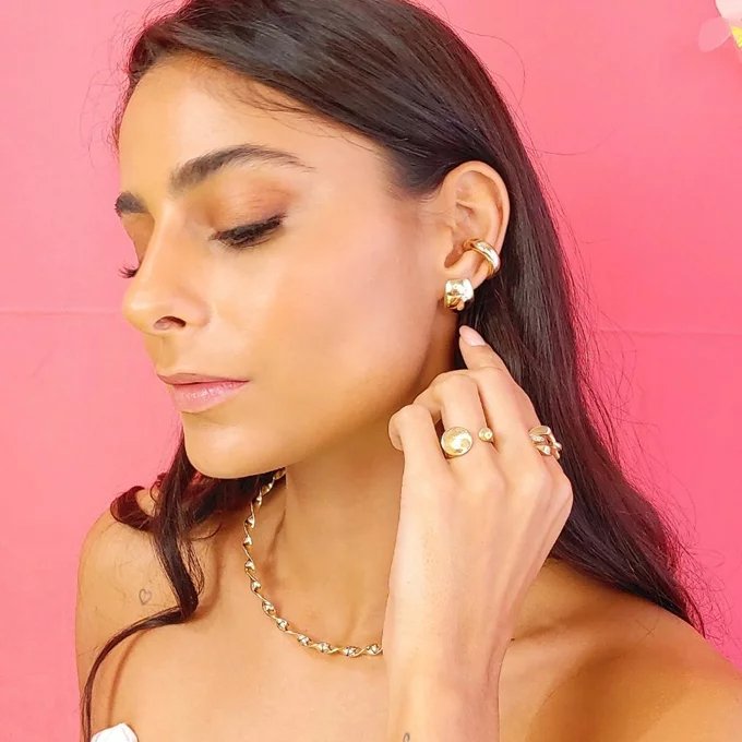 Nossas peças são hipoalergênicas, banhadas em Ouro 18k, sem níquel, e ainda contam com 9 meses de garantia contra defeitos de fabricação.