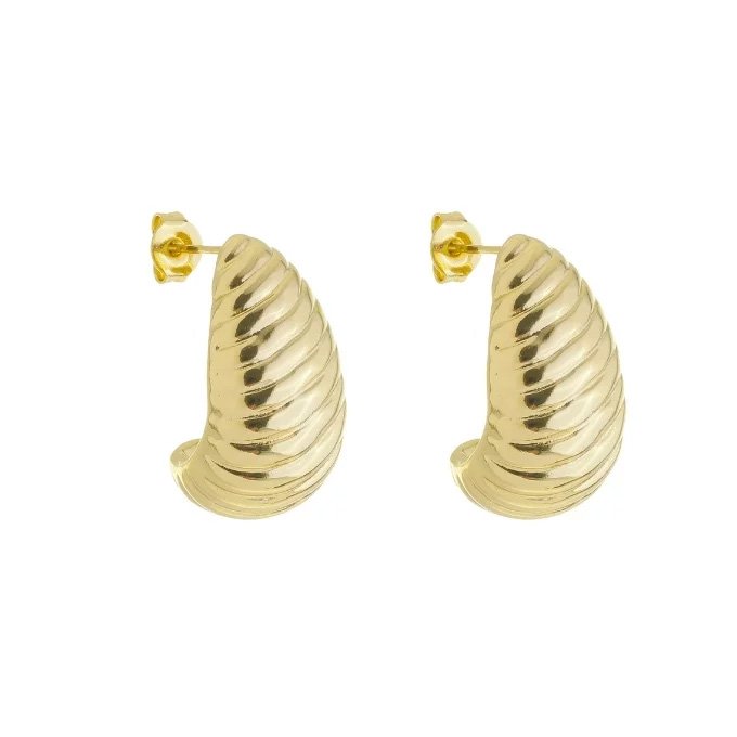 BRINCO MEIA ARGOLA DE GOTA TEXTURIZADA BANHADO A OURO