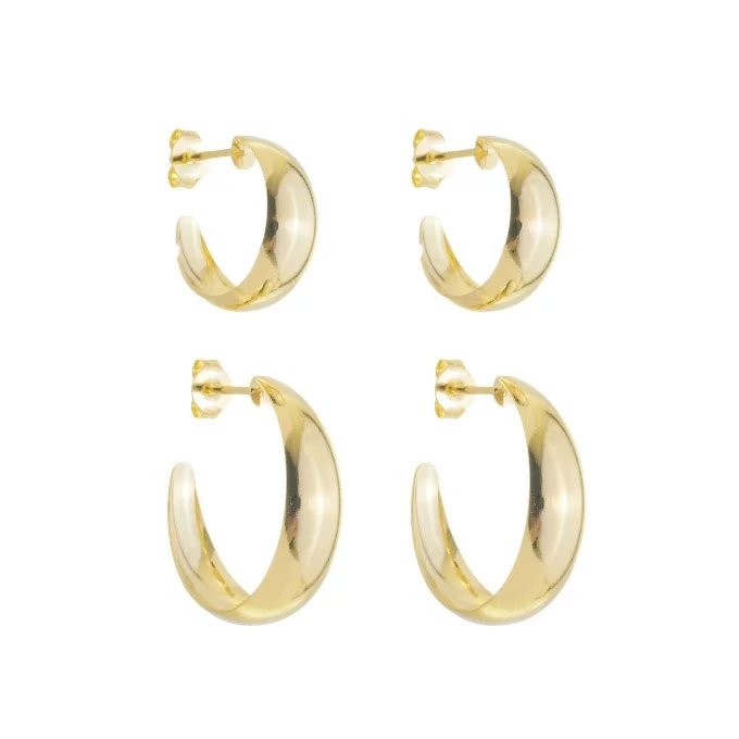 Dupla de argolas lisas abauladas banhado a ouro