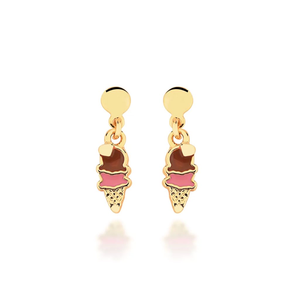 Conjunto infantil brinco e colar de Sorvete resinado, com design fofinho e colorido, é banhado em Ouro 18k.